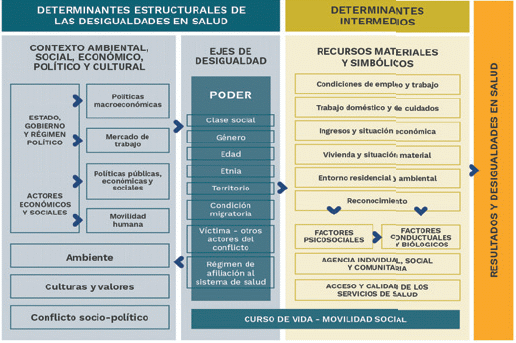 Colombia ha sido un país líder en la gestión de la salud pública y el desarrollo del sistema de salud en la región, reconocido por sus avances en la garantía del derecho fundamental a la salud, la cobertura universal de la salud, y el reconocimiento de la salud en todas las políticas. A pesar de esto, el país se ha enfrentado a situaciones sociales, económicas y políticas que han generado desigualdades crecientes en términos de educación, salud y trabajo (WHO, 2017). En este contexto, desde hace diez años el país con el liderazgo del sector salud, ha emprendido una labor importante en torno al abordaje de los determinantes sociales de la salud, creando marcos normativos, una serie de elementos estratégicos orientados al reconocimiento de las prioridades en salud, así como la implementación de estrategias más efectivas para gestionarlas e incidir positivamente en la salud de las personas. Esta apuesta ha sido materializada en el Plan Decenal de Salud Pública reglamentada en la Ley 1438 de 2011 y fortalecida por las diferentes políticas de gobierno de los últimos años (Social, Plan Decenal de Salud Pública 2012-2021, 2013).