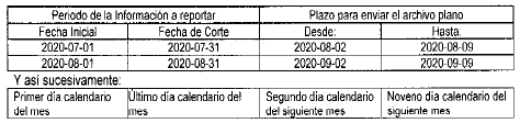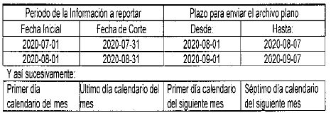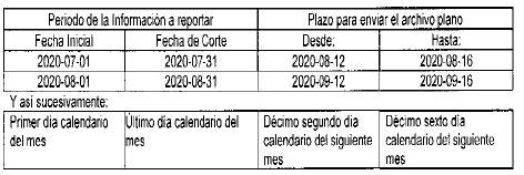 La periodicidad del envío de información es mensual, entre el décimo segundo día (12) día y el décimo sexto (16) día calendario del mes siguiente a la ocurrencia de la novedad. En caso de no tener giros y novedades de residentes en el mes, se reportará el respectivo archivo con solo el registro de control y número de registros de detalle en cero (0).