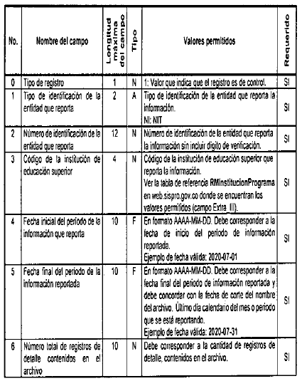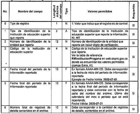 i) Las longitudes de campos definidas en los registros de control y detalle de este anexo técnico se deben entender como el tamaño máximo del campo, es decir que los datos pueden tener una longitud menor al tamaño máximo.