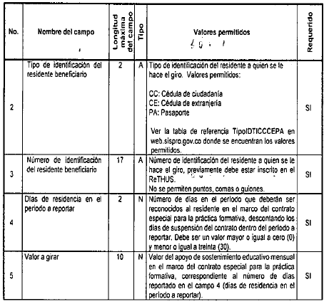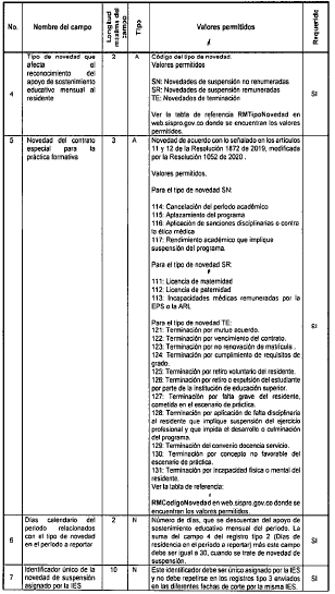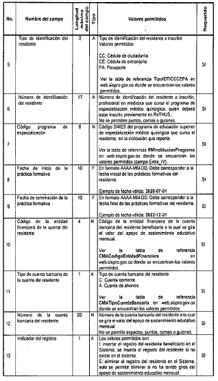 Las instituciones de educación superior con programas de especialización médico-quirúrgica deberán reportar al Ministerio de Salud y Protección Social, en formato PDF, los documentos de inscripción del residente beneficiario, esto es, soporte de la matrícula, contrato especial para la práctica formativa del residente, certificación de la cuenta bancaria y soportes de novedades, de acuerdo con la estructura y especificaciones técnicas definidas en este anexo.