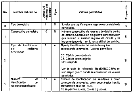 Mediante el Registro Tipo 3, las entidades reportan el detalle de la información de novedades, estos registros serán rechazados en caso de que no se hayan recibido los soportes documentales de las novedades de suspensión del residente. Los registros tipo 3 se identifican únicamente mediante los campos 2, 3 y 8, por lo cual estos no deben repetirse.