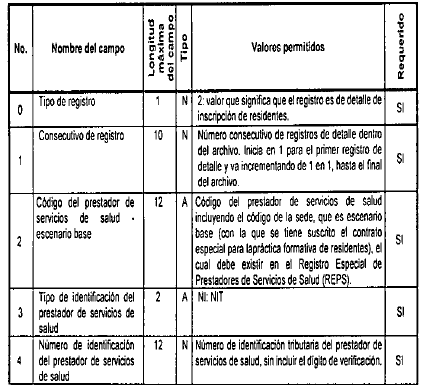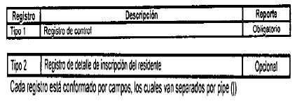 Mediante el registro Tipo 2, las entidades reportan el detalle de la información de inscripción del residente. Los registros tipo 2 se identifican de manera única mediante los campos 5 y 6, por lo cual estos no deben repetirse.