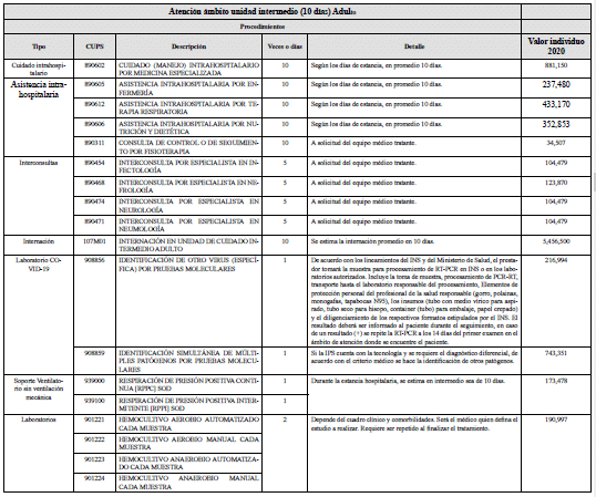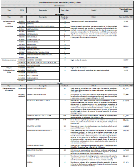 Que con el propósito de brindar mayor claridad a los actores del sistema de salud, respecto al contenido y valor de las tarifas definidas para los servicios de Unidad de Cuidado Intensivo y de Unidad de Cuidado Intermedio, se incluye un anexo técnico con el listado y detalle de los procedimientos, medicamentos e insumos de cada uno de los servicios.