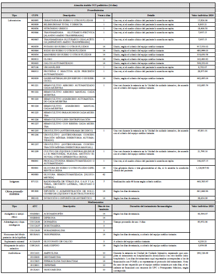 | 4 | Atención ámbito UCI pediátrico | $2.243.968 |