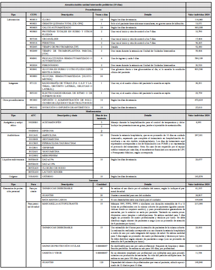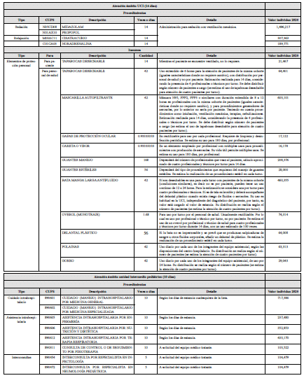 | 3 | Atención ámbito unidad intermedio pediátrico | $1.978.070 |