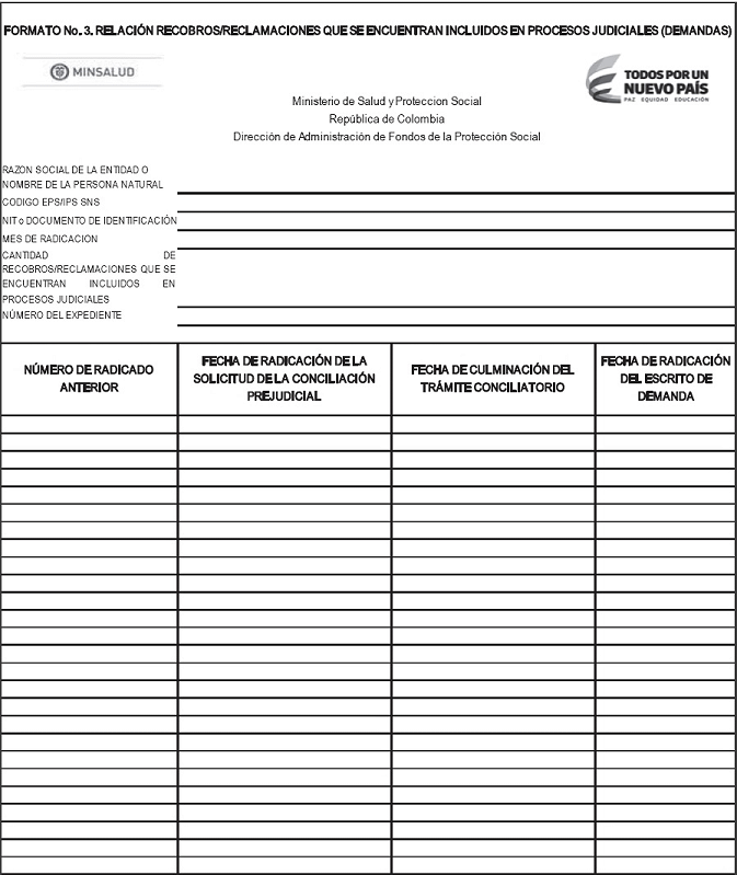 4. Formato número 3, cuando se trate de recobros o reclamaciones que hacen parte de un proceso judicial.
