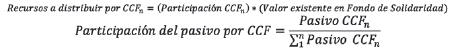 6.2 Participación del pasivo de salud, asociado al programa de salud del Régimen Subsidiado de cada CCF, frente al pasivo total de los demás programas de salud del Régimen Subsidiado de la totalidad de las CCF, respecto de las que es procedente el giro de los recursos del esquema de solidaridad para el respectivo corte. Con fundamento en este criterio, la distribución de la totalidad de recursos del esquema de solidaridad, se efectuará para cada fecha de corte y aprobación de giro, aplicando la siguiente fórmula: