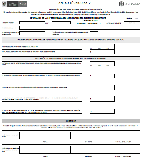 | 7 | Número de veces en que la CCF ha recibido recursos del esquema de solidaridad (sin incluir la asignación que se esté presentando) | 15 | Firma del director(a) General de la ADRES |