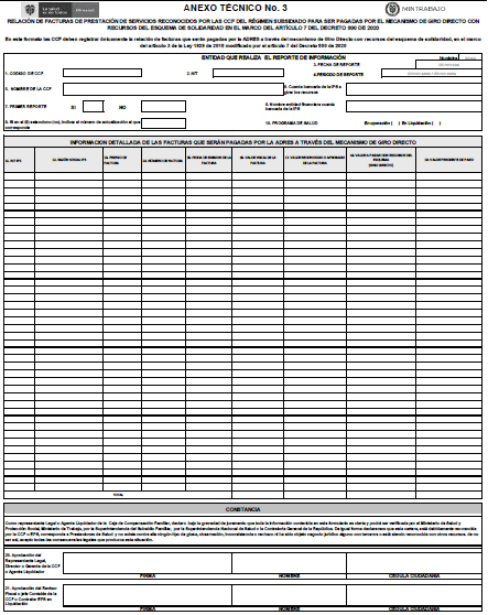 Estructura del archivo plano para el reporte de las facturas de los pasivos por concepto de prestación de servicios en el marco del artículo 7 del Decreto 800 de 2020 y reportados en el Anexo Técnico No. 3