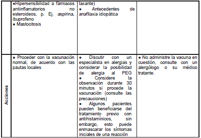 - Si se produce anafilaxia después de la primera dosis, no se debe administrar una segunda dosis de la vacuna ARNm-1273 o de ARNm-BNT162b2 (Pfizer).