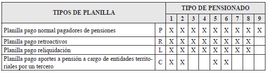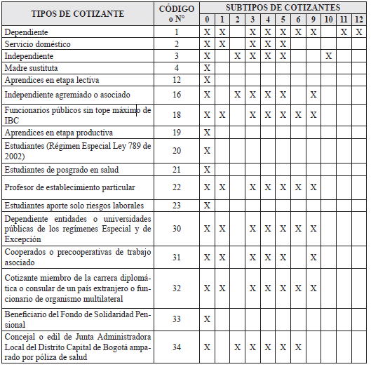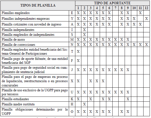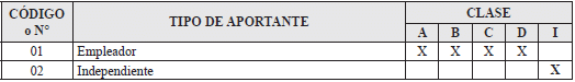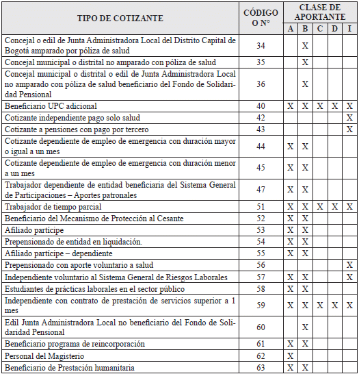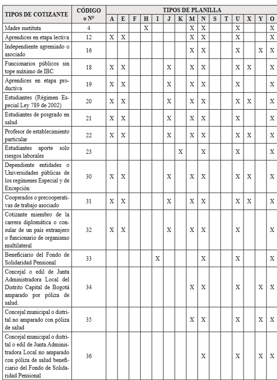 Este tipo de planilla deberá utilizarse cuando se paguen los aportes de los siguientes tipos de cotizantes: