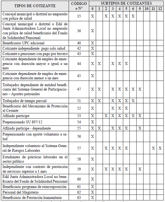 Este subtipo de cotizante solo puede ser utilizado cuando el cotizante se encuentre en el registro que para tal fin disponga este Ministerio a los operadores de información.