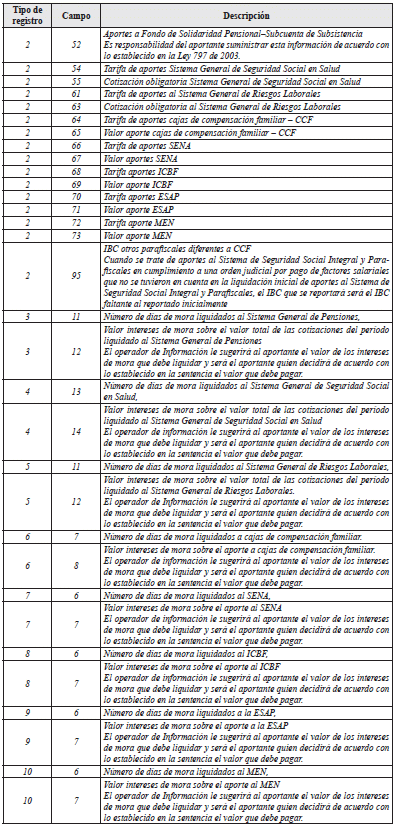 ii. En el registro “Tipo C”, se deberán reportar los valores resultantes de aplicar el reajuste salarial con la tarifa del 12.5% para el Sistema General de Salud y el 16% Sistema General de Pensiones.
