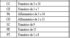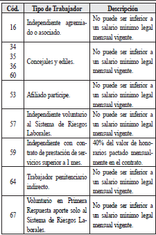 | 3 | Tipo de documento de identificacion del trabajador independiente de afiliados voluntaria a riesgos laborales | 2 | A | Los valores permitidos son![]() | SI |