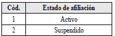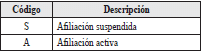 | 26 | Estado de afiliacion | 1 | N | Los valores permitidos son![]() |