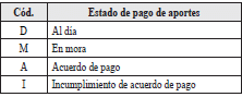 | 27 | Estado de pago de cotizaciones por ARL | 1 | A | Los valores permitidos son![]() |