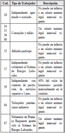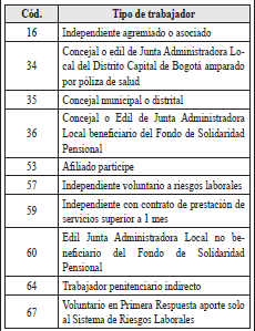 Que, en el mismo sentido, se encuentran, la Ley 1551 de 2012 que establece el derecho de los concejales a la cotización al Sistema de Seguridad Social Integral: salud, pensiones y riesgos laborales, la cual se hará con cargo al presupuesto de la administración municipal, sin que implique vínculo laboral con la entidad territorial, y la Resolución número 4020 de 2019 del Ministerio de Trabajo, “por medio de la cual se establecen las especiales condiciones del trabajo penitenciario en la modalidad indirecta, su remuneración, los parámetros de afiliación al Sistema de Riesgos Laborales y se dictan otras disposiciones” que determina en su artículo 6o que la afiliación, novedades y pago de estos trabajadores penitenciarios en la modalidad indirecta se realizarán a través de la Planilla Integrada de Liquidación de Aportes (PILA) como trabajador independiente y que la entidad o persona natural contratante deberá realizar su afiliación y pago de las cotizaciones al Sistema General de Riesgos Laborales.