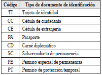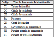 | 5 | Tipo de documento de identificacion frente al cual se reporte la novedad | 2 | A | Los valores permitidos son![]() |
