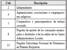 | 2 | Tipo de documento de identificacion del responsable de la afiliacion | 2 | A | Corresponde al tipo de documento de identificacion del responsable de la afiliacion del trabajador independiente Los valores validos son ![]() |