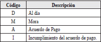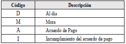| 7 | Período de mora por cada afiliación activa | 7 | A | Debe corresponder al año y mes del período en mora o del cual no se tenga un acuerdo de pago ni se haya reportado que se encuentre al día para dicho período. En formato AAAA-MM |