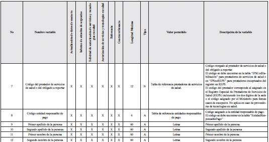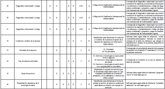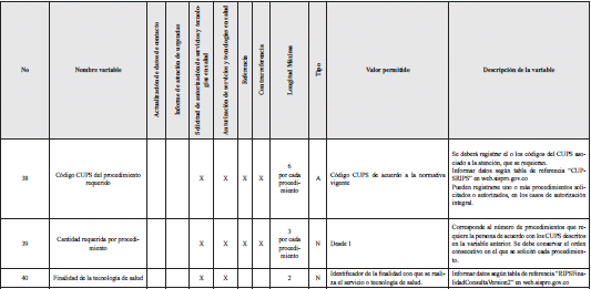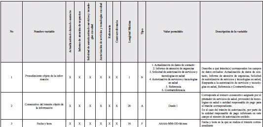 A continuación, se definen los campos de datos estandarizados que deberán ser usados por los prestadores de servicios de salud, los proveedores de tecnologías en salud y la entidad responsable de pago, mediante los medios de transferencia de información y canales de información transaccionales acordados, para cada uno de los siguientes trámites, según corresponda: