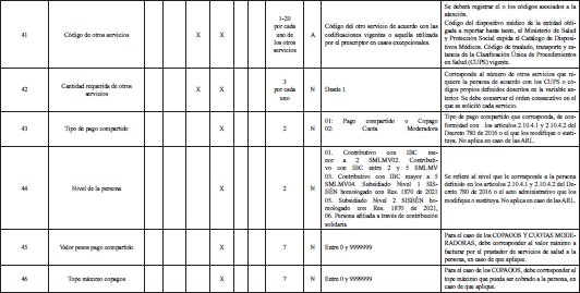En la tabla, se relacionan los campos a diligenciar, según aplique, con la descripción y longitud correspondiente: