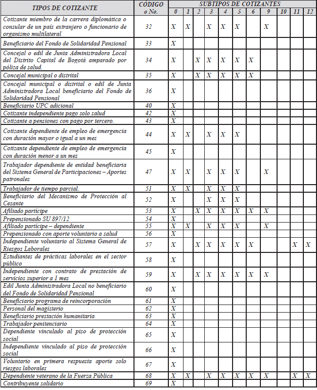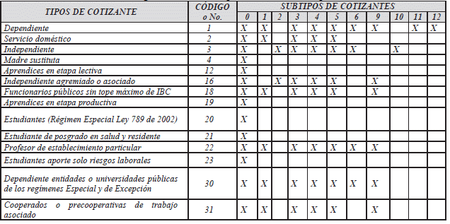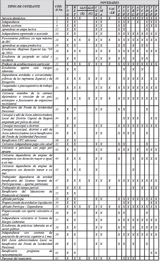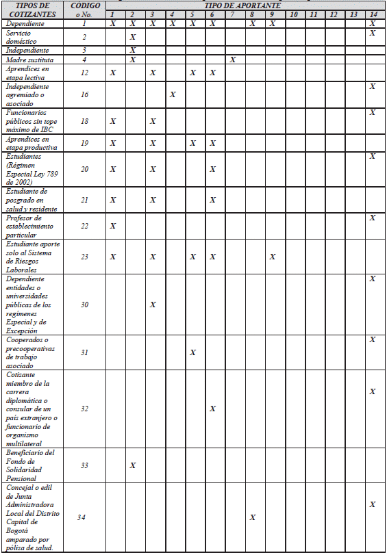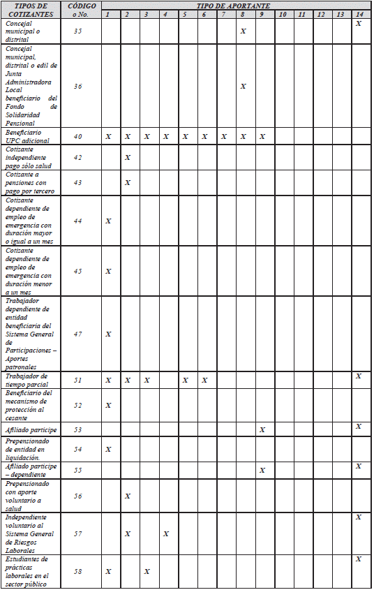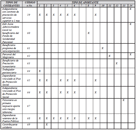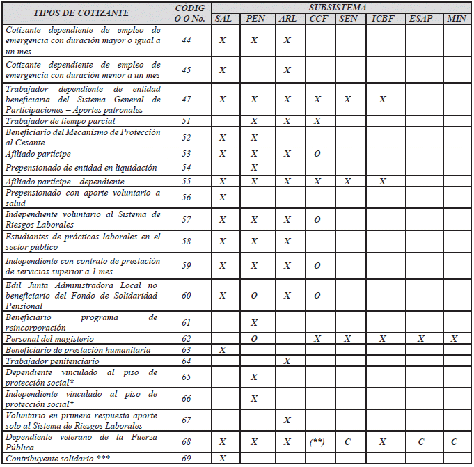 *El aporte de estos tipos de cotizantes a pensiones corresponde al Piso de Protección Social