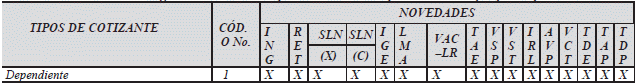 | 45 | Cotizante dependiente de empleo de emergencia con duración menor a un mes |
