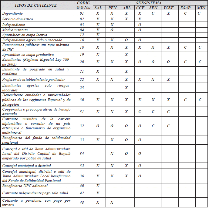 | 57 | Independiente voluntario al Sistema de Riesgos Laborales |