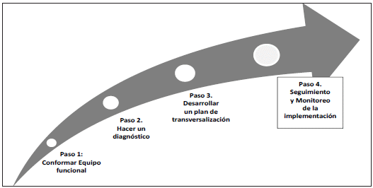 Indicar los pasos y acciones por seguir en la adopción y seguimiento de la estrategia de transversalización del enfoque de género.