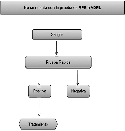 Cuando la IPS no cuente con laboratorio clínico y no realice pruebas No treponémicas, las pruebas rápidas deben ser usadas como entrada al algoritmo diagnóstico.