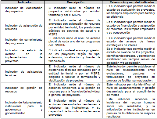 - El estado de implementación del PMIDSN empleando de los indicadores definidos en la presente resolución.