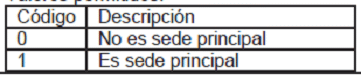 - Nombre de la sede principal