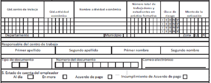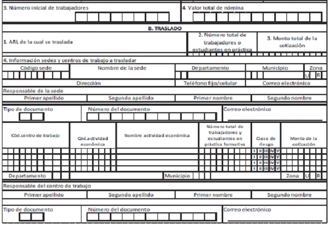 4. Información de sedes y centros de trabajo: Datos obligatorios. Estos datos aplican para el traslado de cada una de las sedes con las que cuenta el empleador.