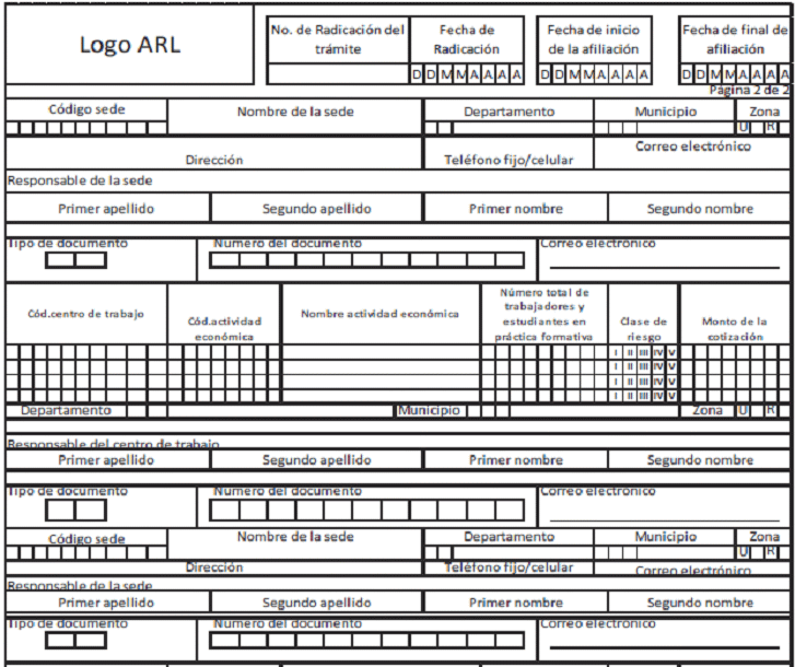 2. Autorización para que la ARL manejen los datos personales del afiliado o del responsable de la filiación de acuerdo con lo previsto en la Ley 1581 de 2012 y el Decreto 1377 de 2013 compilado en el Decreto 1074 de 2014 Único Reglamentario del Sector Comercio, Industria y Turismo. Declaración de la no obligación de afiliarse al Régimen Contributivo, Especial o de Excepción.