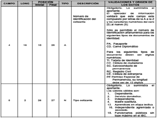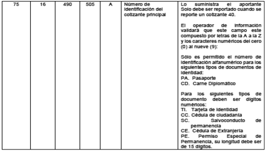 5. En el numeral 2.1.2.1 “Descripción detallada de las variables de novedades generales. Registro tipo 2” del Capítulo 1 “Archivos de entrada” del Anexo Técnico 2 “Aportes a Seguridad Social de Activos”, modificar las validaciones y origen de los datos de los campos “4 - Número de Identificación del cotizante”, “5-Tipo de cotizante” y “75 - Número de identificación del cotizante principal”; así: