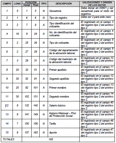 “2.1.2.1 Descripción detallada de las variables de novedades generales. Registro tipo 2