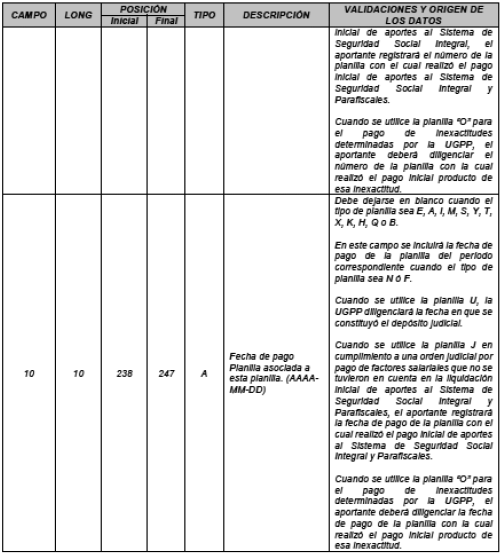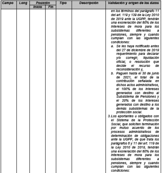 Este registro se generará cuando los aportantes hayan utilizado los tipos de planillas “O - Planilla Obligaciones determinadas por la UGPP” o “Q - Acuerdos de pago realizados por la UGPP (…)”.