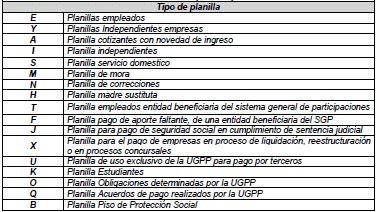 Cuando se utilice este tipo de planilla será permitido reportar únicamente novedades de ingreso o retiro.