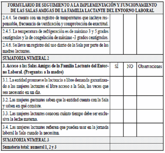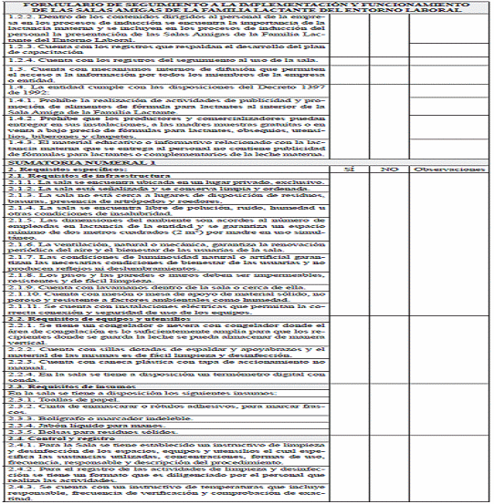 FORMATO DE SEGUIMIENTO AL FUNCIONAMIENTO DE LAS SALAS AMIGAS DE LA FAMILIA LACTANTE DEL ENTORNO LABORAL