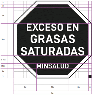32.3.2. Grasas saturadas. La letra “x” corresponde a la unidad de proporción sobre la que se construye el ícono del sello.