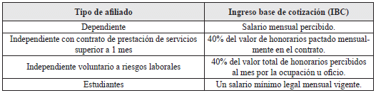 19. Ingreso Base de Cotización (IBC): Dato obligatorio. Lo suministra el afiliado. Registre el valor del salario o del ingreso mensual sobre el cual va a pagar los aportes al SGRL. El valor señalado debe ser igual o mayor a 1 SMLMV y menor o igual a 25 SMLMV.