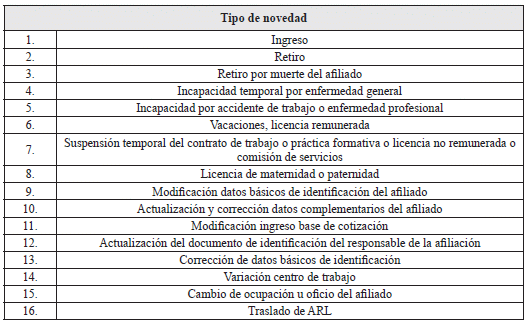 1. El Reporte de novedades no puede realizarse simultáneamente con la afiliación. La novedad es la modificación de los datos reportados en la afiliación o de la condición de la afiliación.