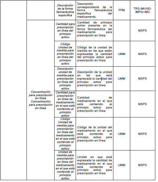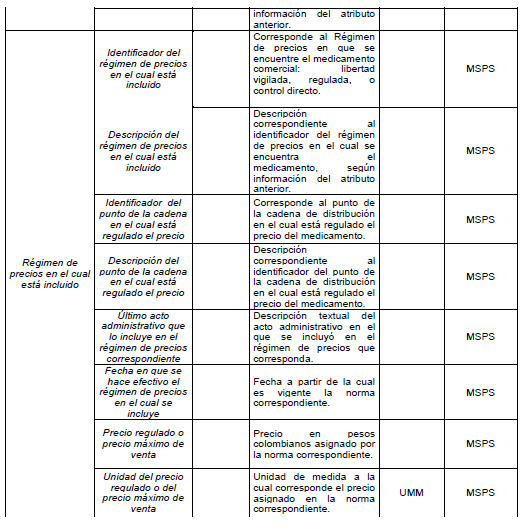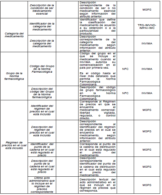 DESCRIPCIÓN DE ATRIBUTOS DEL ESTÁNDAR DE DATOS DE MEDICAMENTOS.