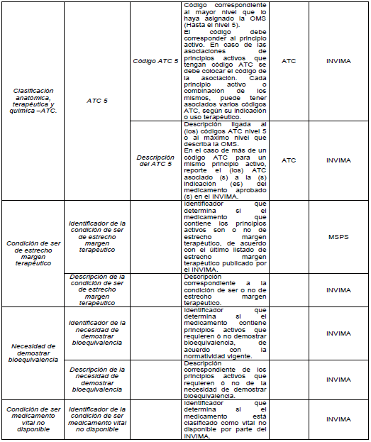 Por la cual se define el estándar de datos de medicamentos de uso humano en Colombia y se dictan otras disposiciones.