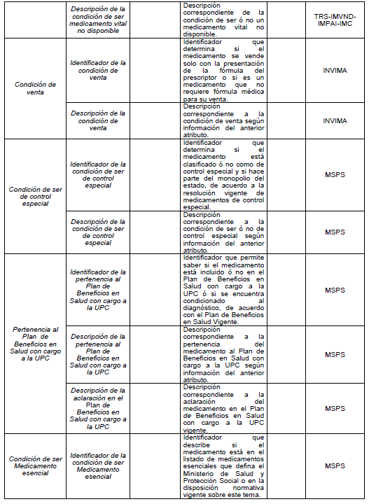 3.2. Atributos del estándar de datos de medicamentos: características, cualidades o propiedades del medicamento en cuanto a su descripción común, venta o comercialización.