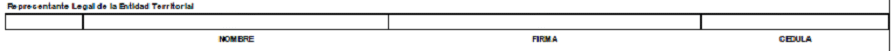 | El representante legal de la entidad territorial departamental/distrital que suscribe esta certificación, declara que la determinación de la deuda reconocida y contenida en este documento cumple con las condiciones definidas en el artículo 238 de la Ley 1955 de 2019. |