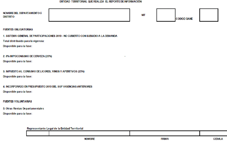 | Tipo de Fuente | 120 | Fuente de la Información: Entidades Territoriales del orden departamental y distrital y Adres | 3 | SÍ |