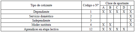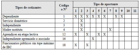 | TIPO DE COTIZANTE | DESCRIPCIÓN | SISTEMA AL QUE DEBE APORTAR |