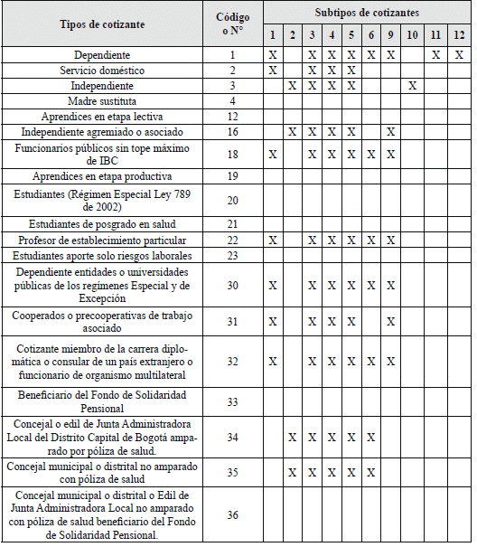 7. <sic, 8> RELACIÓN TIPO DE COTIZANTE VS. SUBTIPO DE COTIZANTE